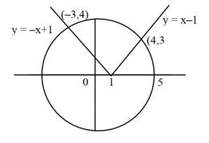 $$A = 25\pi – \int_{-3}^{4} \sqrt{25-x^{2}} dx + \int_{-3}^{4} |x-1| dx$$