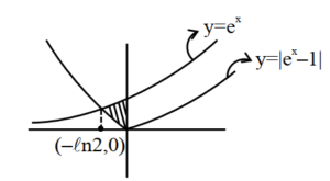 Area $= \int_{-\ln 2}^{0} [e^x – (1 – e^x)] dx = \int_{-\ln 2}^{0} (2e^x – 1) dx$