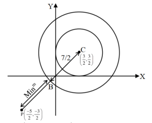 $$ \frac{3}{2} \le \left|z – \frac{3}{2}(1+i)\right| \le \frac{7}{2} $$