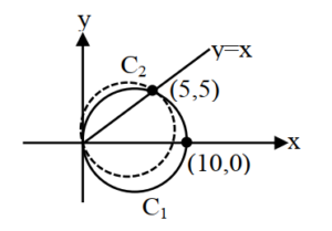Equation of $C_1$: $(x-5)^2 + y^2 = 5^2 \Rightarrow x^2 + y^2 – 10x = 0$.