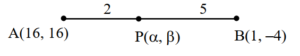 **Case 1:** P divides segment AB in ratio 5:2 ($AP:PB = 5:2$).