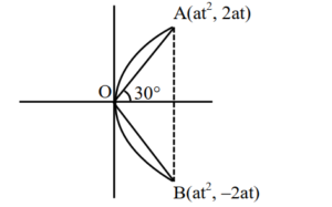 $$ \tan 30^\circ = \frac{y_A}{x_A} = \frac{2t}{t^2} = \frac{2}{t} $$
