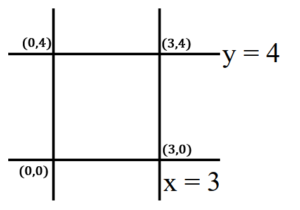 The vertices of the rectangle are $(0,0), (3,0), (3,4),$ and $(0,4)$.