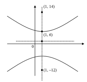 Centre of hyperbola = Midpoint of foci = $(\frac{1+1}{2}, \frac{14-12}{2}) = (1, 1)$.