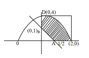 $$Area = \int_{0}^{2} y_{\text{parabola}} \, dx – \text{Area of } \triangle OAB$$