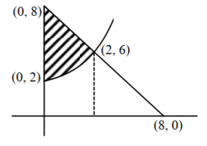 Wait, looking at the region in standard graph, $y=x^2+2$ is a parabola opening up from $(0,2)$. $x+y=8$ is a line.