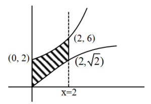 $$A_1 = \int_{0}^{2} (\text{Upper Curve} – \text{Lower Curve}) dx$$