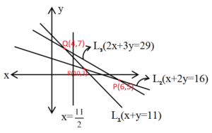 Solving $L_1$ and $L_3$: $y=7, x=4 \Rightarrow Q(4,7)$