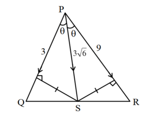 $$\frac{\vec{PQ} \cdot \vec{PS}}{3 \cdot 3\sqrt{6}} = \frac{\vec{PR} \cdot \vec{PS}}{9 \cdot 3\sqrt{6}}$$